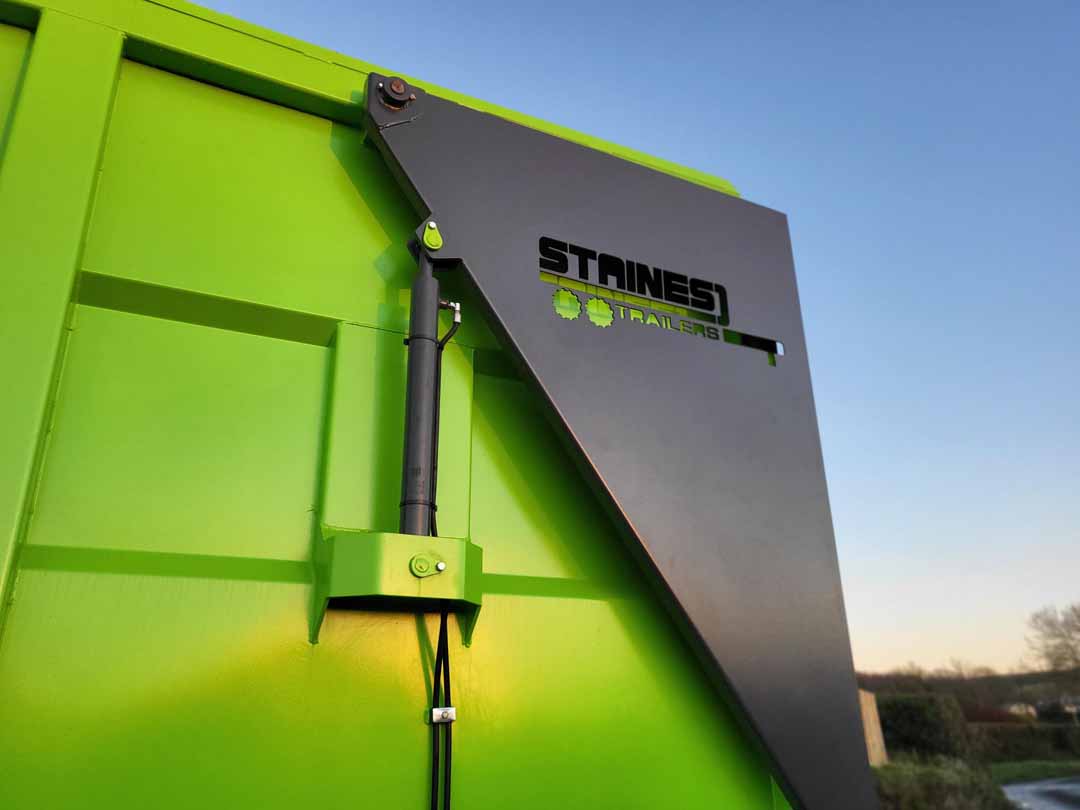 Our Staines heavy duty tipping trailer has a carrying capacity of 16 tonne while holding a volume of 32 meters cube. Designed with bevelled edges, this helps eliminate any recess areas, which in turn eliminates any material gathering on the structure. Our twin 3-stage tipping rams are the perfect addition to achieve an extensive tipping angle, assisting in fully unloading your haul. Complete with safety rollover sheet.